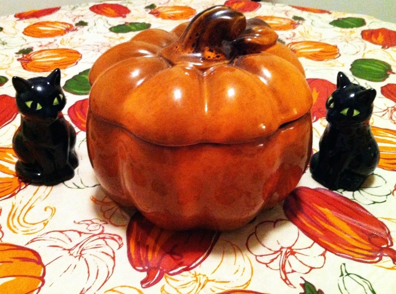 I know it’s not fall yet, but I’ve been more than ready for it, so once we hit September, I pulled out the decorations, mainly just the pumpkins and seasonal candles. While the cats are technically Halloween oriented, those are actually the salt and pepper shakers we use year round. I’m saving the rest of my Halloween decor for October.