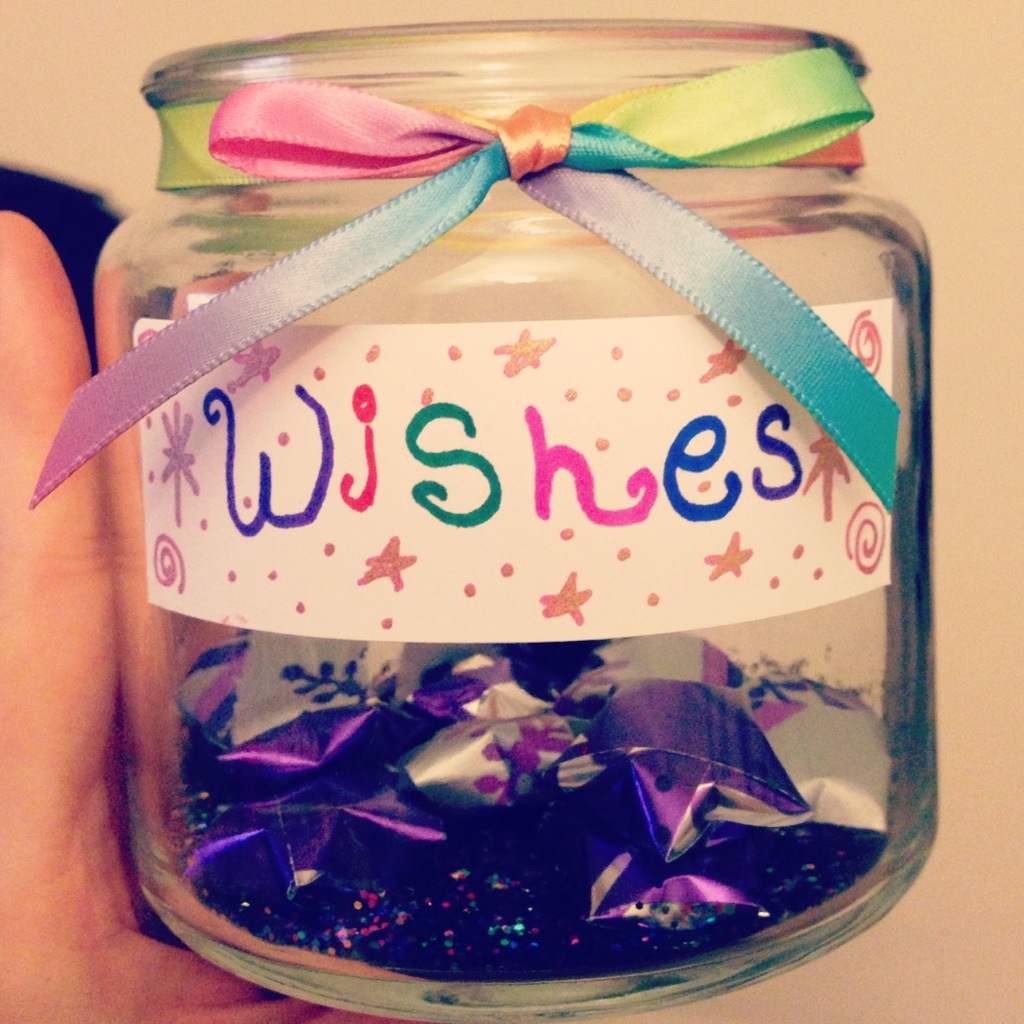 I decided to make a wish jar for the new year rather than write out a boring list of resolutions. This way I have a pretty visual and a reminder to strive to make the wishes and goals within the stars come true.